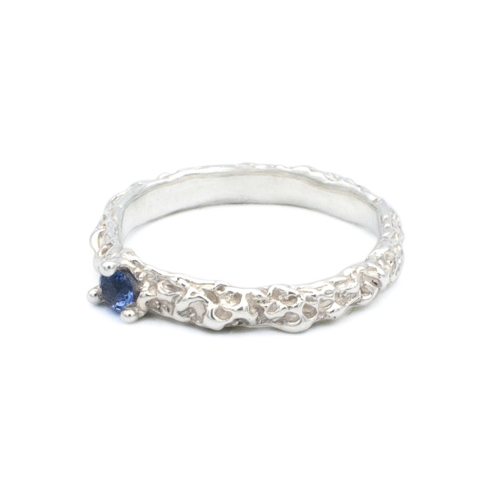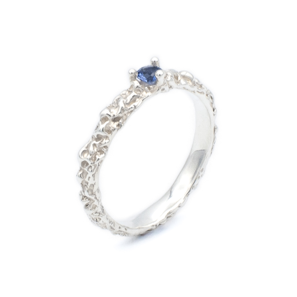A rugged yet delicate ring, inspired by volcanic rocks. Organic shapes and textures meet in a timeless solitaire design, with a central stone glowing softly, a quiet echo of raw landscapes and molten beauty. Each curve tells a story of love for nature and hand-sculpted artistry, making this piece a wearable sculpture, a fragment of the natural world. Perfect for those who cherish unique jewelry that feels alive, intimate, and unmistakably personal.